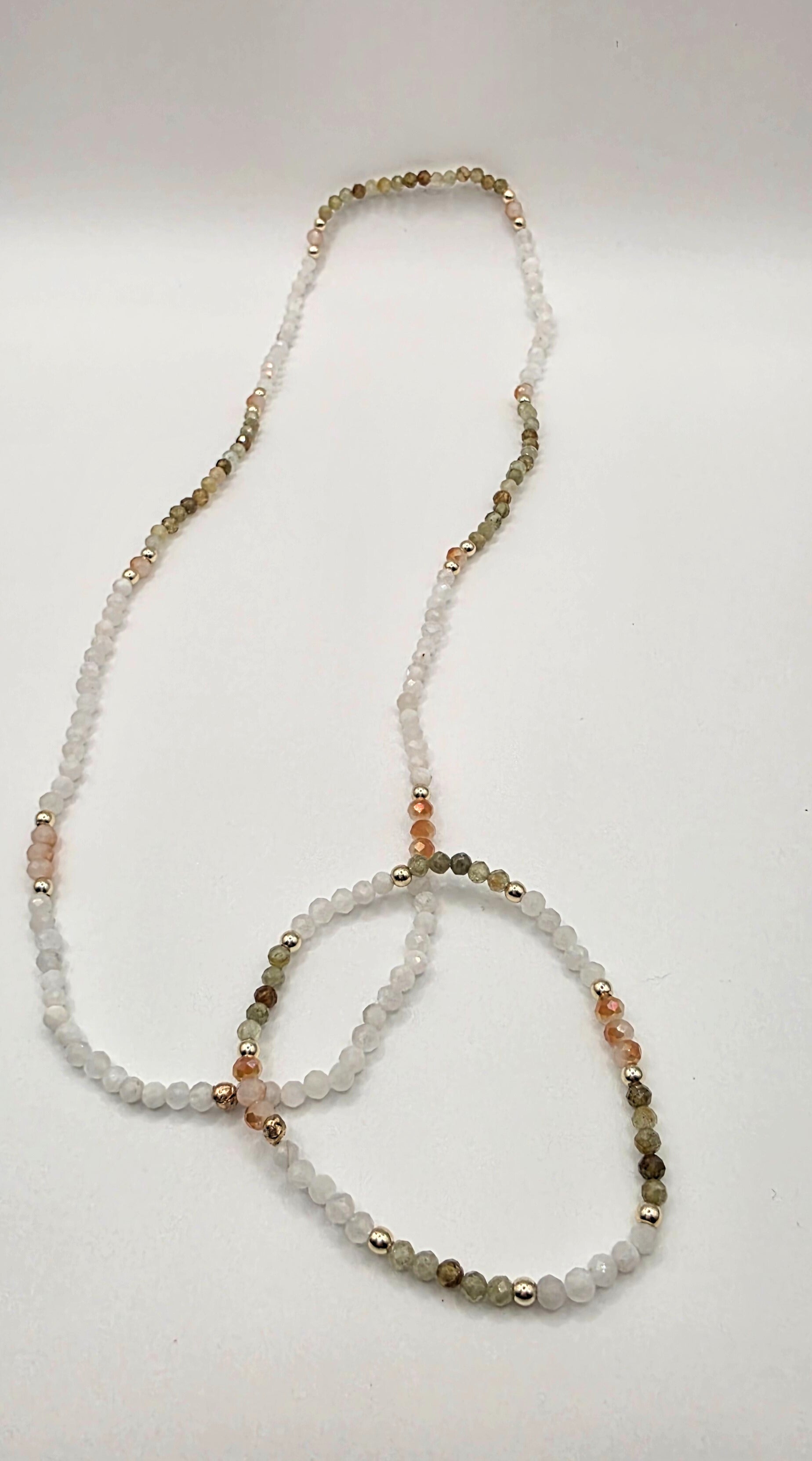 This set consists of Jasper stones, faceted glass beads and 2mm gold filled beads.