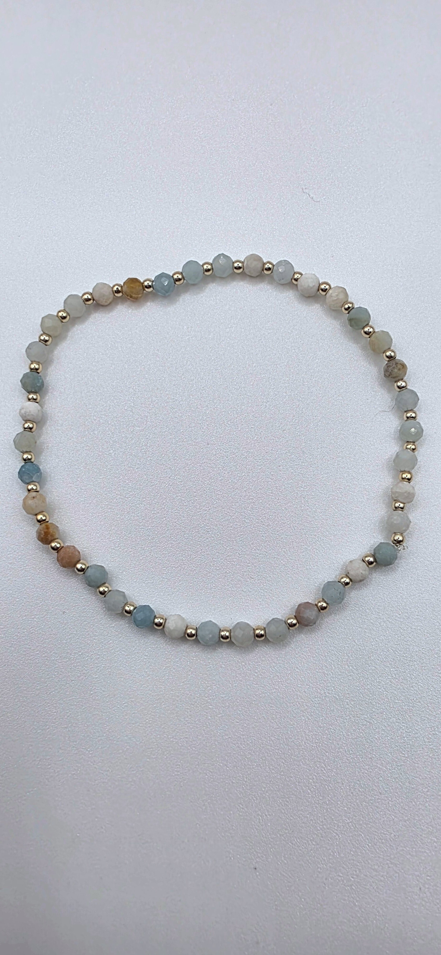 This design includes Natural Faceted Amazonite Stones and Gold-Filled Beads with both beads measuring 2mm.