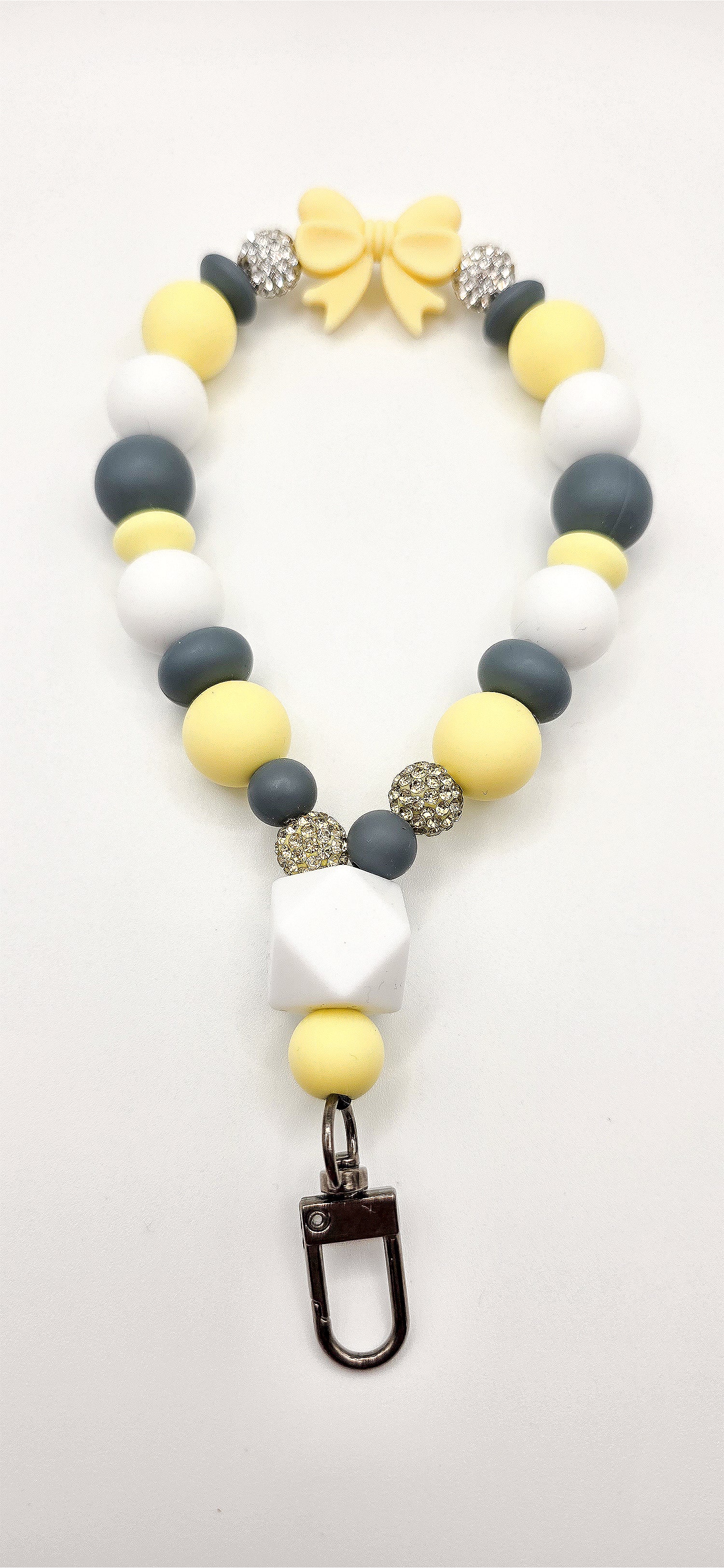 Each wristlet features smooth silicone beads strung on a stretch cord for a comfortable, secure fit. Designed to slip easily over your wrist and keep your essentials close, they’re perfect for errands, events, or everyday wear. Each design is made by hand, balancing practical function with warm, handmade charm. These can be used for more than just your phone, the ideas are endless! If you choose to use it as a piece with your phone, we will include the needed piece to fit inside of your case.